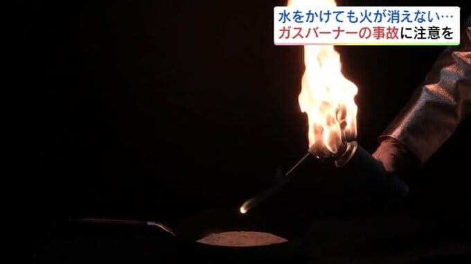 昨年度までの5年間で、ガスバーナーによる事故が、129件も起きています。怖いのが、一度引火すると、水では簡単に消せないため、NITE=製品評価技術基盤機構が、注意を呼びかけています。