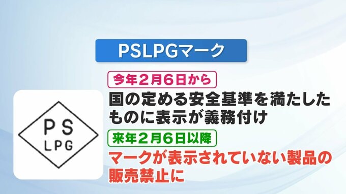 さらに、安全な製品を購入するための目安となるのが、国の安全基準を満たしたものにつけられる「PSLPGマーク」です。今年2月から表示が義務付けられ、来年2月以降は、このマークが付いていない製品の販売は禁止されます。