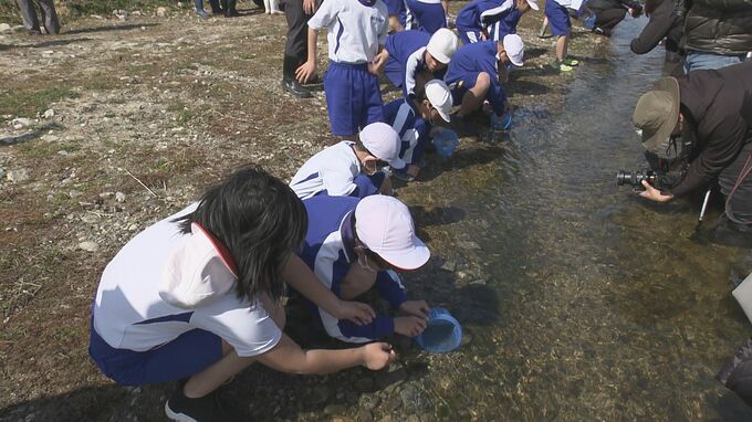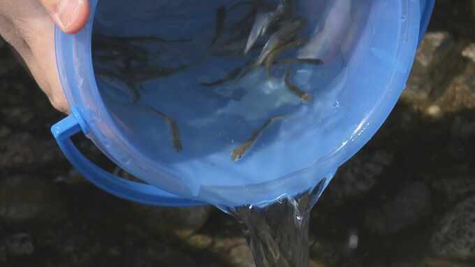 子どもたちの目の先にいるのは、楢葉町の特産品「サケ」の稚魚です。17日、福島県楢葉町の木戸川では稚魚の放流が行われ、地元の小中学生や園児など、およそ120人が参加しました。