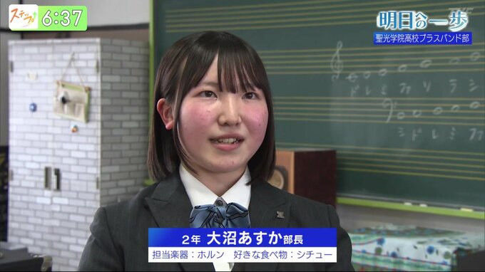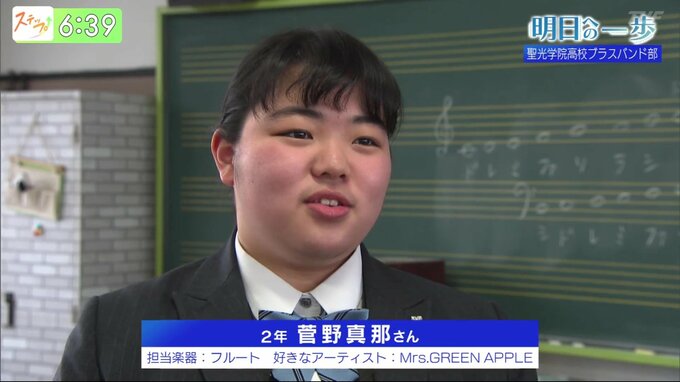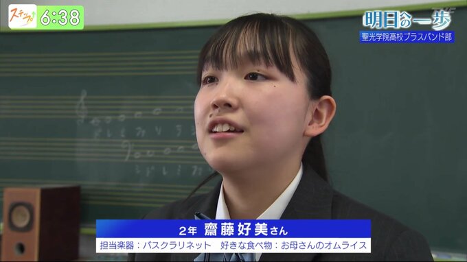 「コンクールにこの人数で出るの?と不安だったんですけど、やってみたらみんなひとりひとり自分のパートをしっかり吹いてできているので、他の学校に負けないくらい頑張っています。」