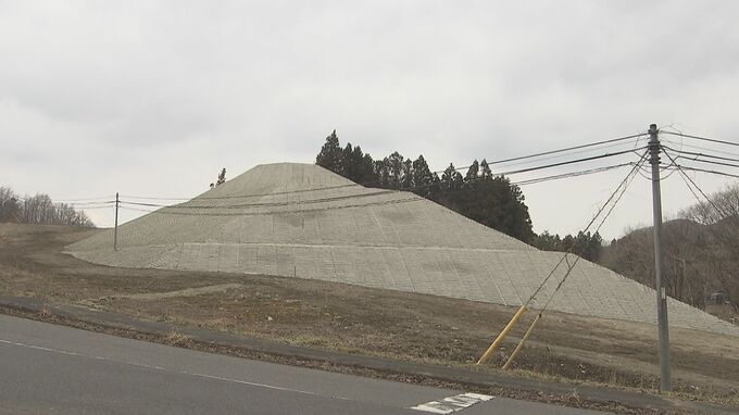県によりますと、高さを22メートルから15メートルまで低くし、法面には雨などの浸食を防ぐシートが張られたということです。