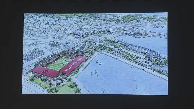 サッカーJ2・いわきFCのホームスタジアムの候補地が、いわき市小名浜に決まり、28日、運営会社がその概要を発表しました。