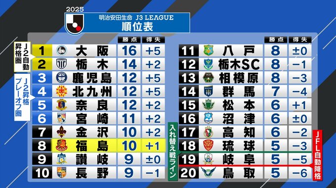 サッカー明治安田J3の福島ユナイテッドFCは、去年2戦2敗と苦手にしている鳥取をホームに迎え撃ちました。