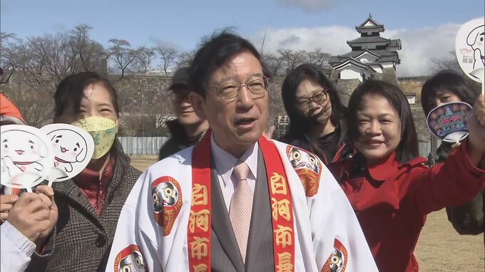 去年1月に就航した福島と台湾を結ぶチャーター便。様々なツアーが展開される中、4月から始まったのは、白河市の小峰城を巡るツアーです。ツアー初日の4日は、台湾からおよそ120人が訪れ、白河市の鈴木和夫市長が直接、出迎えました。