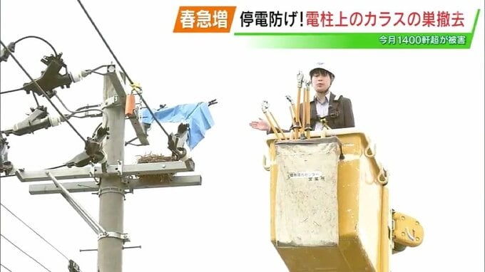 東北電力ネットワーク・橋本修配電主査「電柱上にカラスの営巣を発見した場合は、弊社のコールセンターもしくはホームページのチャットから情報提供をお願いしたい」