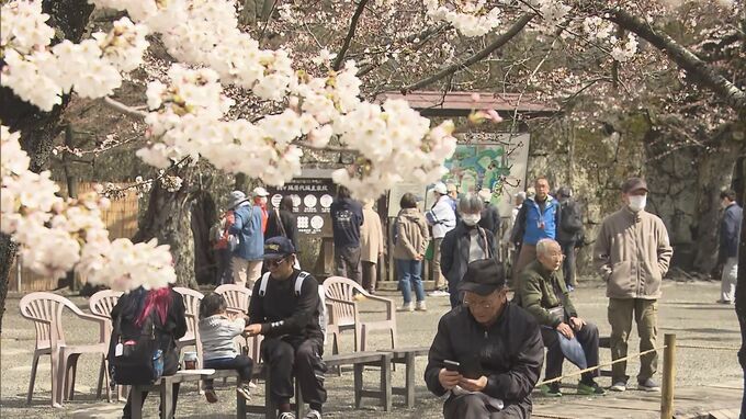 小枝佳祐記者「一部でサクラの見頃を迎えた鶴ヶ城公園では、午前中から多くの花見客が訪れています」