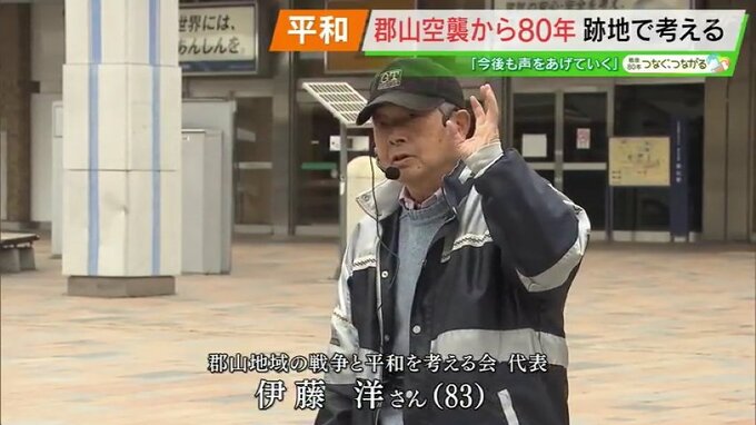 空襲が発生した4月12日、当時に思いを馳せ、郡山駅前で、空襲の跡地をめぐる人たちがいました。戦争と平和を考える市民団体が毎年、開いているもので、郡山市の伊藤洋さん(83)が代表を務めています。