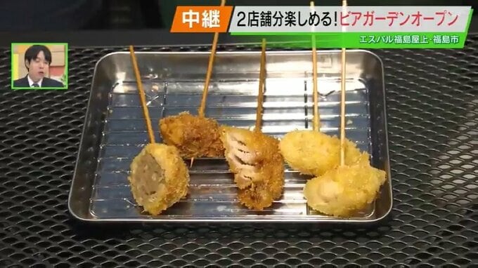 そして、今年のビアガーデンのテーマは、【1店舗で2店舗分楽しめる!?】ということで、今年は串カツもメニューに加わりました。