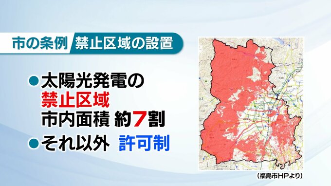 まず、福島市では、条例でエリアを分けました。災害の発生や景観の悪化を招くおそれのある、市の面積の7割は「禁止区域」とし、それ以外の地域は開発を「許可制」にしています。