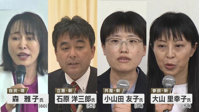 参議院選挙をめぐっては、これまでに自民党・現職の森雅子さん、立憲民主党・新人の石原洋三郎さん、共産党・新人の小山田友子さん、参政党・新人の大山里幸子さんが立候補を表明しています。