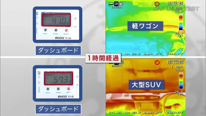 いずれにしても、外は過ごしやすい時でも、車の中は灼熱になります。子どもやペットを車内に残すことは、絶対にやめてください。(※実験の映像はJAF提供)