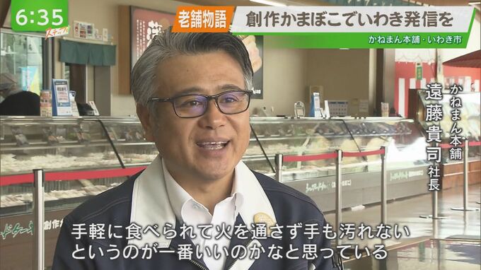 福島県内で長く愛されている老舗の今を伝える「老舗物語」。今回は、震災や食の変化など様々な壁に直面しながらも、「創作かまぼこ」で生き残りをかけるいわき市の「かまぼこ店」です。