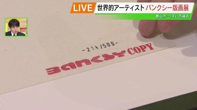 皆さん、その名前を一度は耳にしたことがあるのではないでしょうか。現代アートのアーティスト、バンクシーの版画展が、21日から福島県郡山市のうすい百貨店1階で行われています。