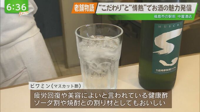 --田中信幸さん(中屋酒店 三代目代表)「ビワミンのマスカット酢というものなんですけど、マスカットのお酢を使って、疲労回復だったり美容によかったり。福島県内だと2店舗くらい(取り扱っている)かな。」