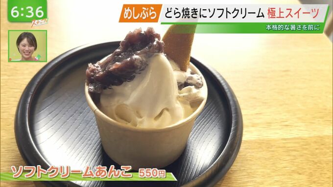 どらやきにソフトクリームを乗せて味変も!