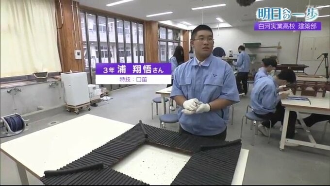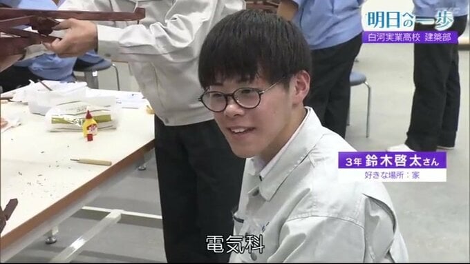 福島県白河市にある白河実業高校の建築部。明るい光が差し込む木造の実習棟で、生徒たちは建築の知識を深めながら、モノづくりの楽しさを追求しています。