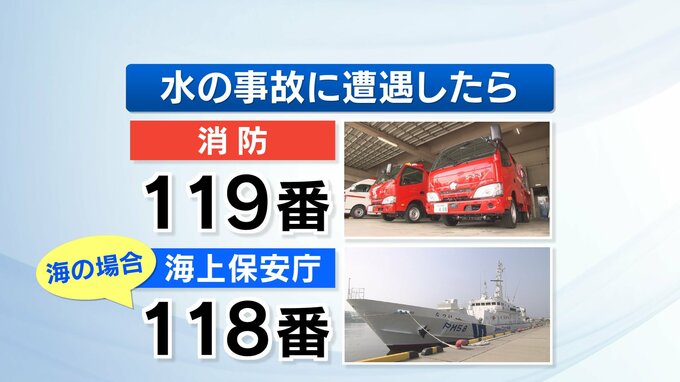 そして、海や川で事故を見つけた場合は、無理に救助しようとせず、119番通報のほか、海の場合は海上保安庁の118番に通報することも合わせて覚えておきましょう。