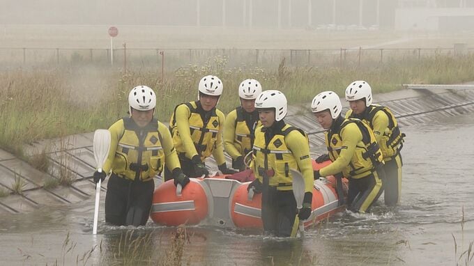 県警とNTT東日本が初めて合同で開催した災害訓練。訓練は、大雨で川が氾濫した影響で市街地が水没し、孤立した家に住民2人が取り残された想定で行われました。まずは、NTT東日本の社員が自社のドローンを飛ばし、上空から孤立した家の状況を撮影します。その映像が県警に送られ、すぐに救助部隊に指示が出されました。