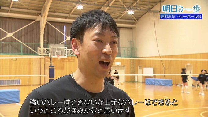 「伝統的にバレーボールの強い地区で、お父さんお母さん方もバレーボールをやってきたってこともありまして、地域柄、バレーボールを盛んにやってると、打つにしろ拾うにしろ、何でもできる選手が揃っているなって感じなので。強いバレーはできないんですけど、上手なバレーができきるっていうところが、強みかなって思っています。」