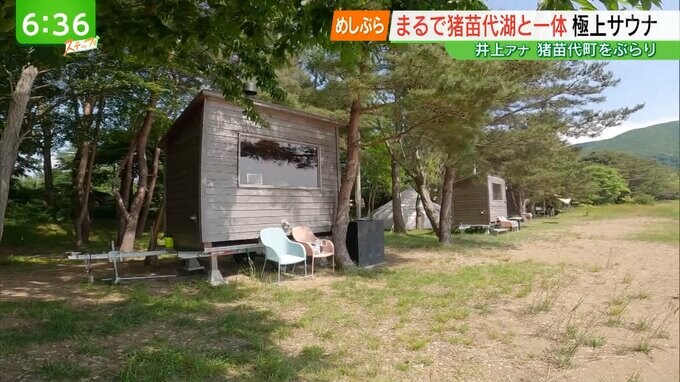 --井上アナ「猪苗代湖のすぐそばにこんなに立派なサウナ施設があるんですね~!これはもう入るしかありませんね!」