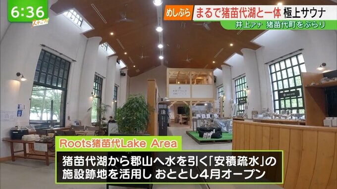 続いて私が向かったのは猪苗代湖上戸浜のすぐそば『Roots猪苗代Lake Area』です。猪苗代湖から郡山へと水を引く明治時代の大事業「安積疏水」の施設をリノベーションしおととし新たな観光拠点としてオープンしました。