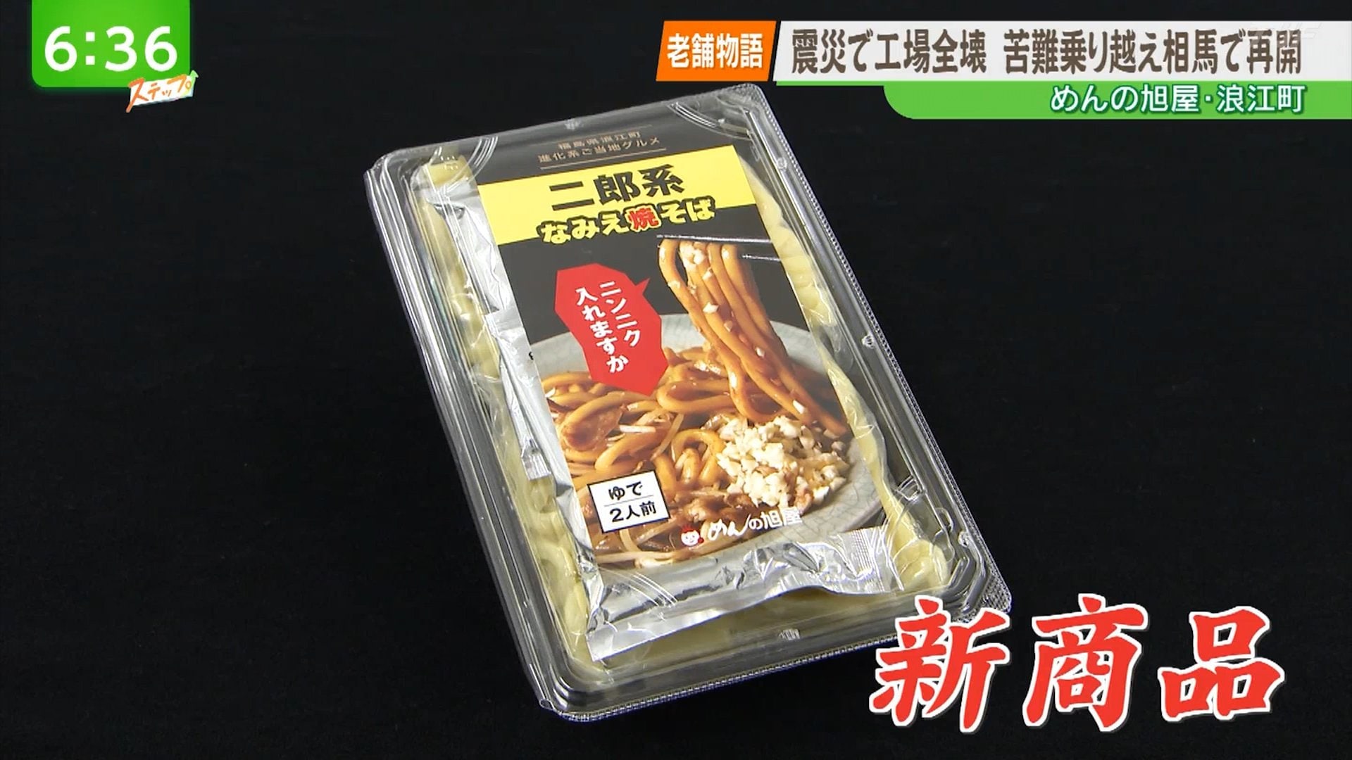 --田河朋裕さん(めんの旭屋 専務取締役)「“二郎系なみえ焼そば”という新商品を発売しました。なみえ焼そばは40代、50代、60代の方に購入されているというのがデータでわかりまして、20代・30代の若い方になみえ焼そばを知っていただくきっかけを作りたいというところで。」