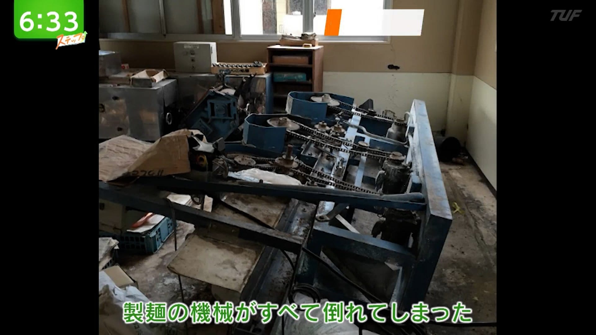 --田河朋裕さん(めんの旭屋 専務取締役)「震災の地震で製麺の機械が全て倒れてしまった。工場の裏に石造りの蔵があったんですけど、そこに小麦粉とか材料を保管してたんですけど、そこも倒壊してしまった。再開には当分時間がかかるかなと」