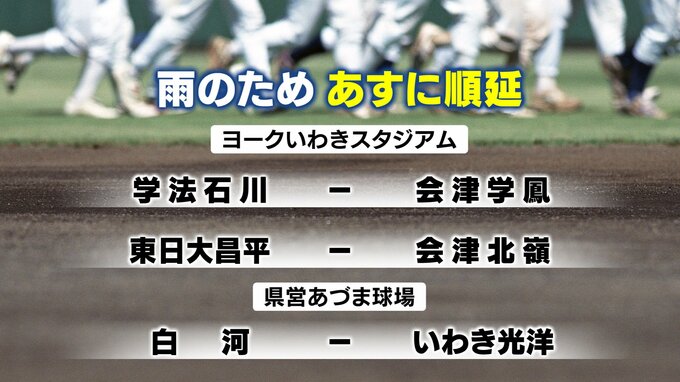 また、ヨークいわきスタジアムの2試合と、県営あづま球場の1試合は雨のため、15日に順延となりました。