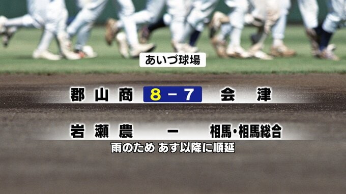 あいづ球場では、郡山商業が8対7で会津に競り勝ちました。一方、第2試合岩瀬農業対相馬・相馬総合の連合チームの対戦は雨のため、16日以降に順延となりました。