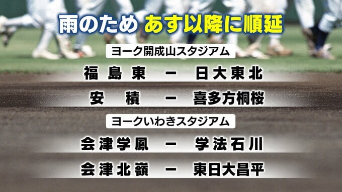 また、ヨーク開成山スタジアムの2試合と、ヨークいわきスタジアムの2試合も雨のため、16日以降に順延となりました。