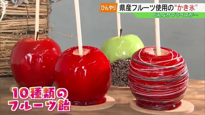 やってきたのは、福島市にあるフルーツ飴専門店、『サプライズ』。リンゴ飴に加え、ぶどうやみかんの飴など、10種類のフルーツ飴が楽しめるお店です。