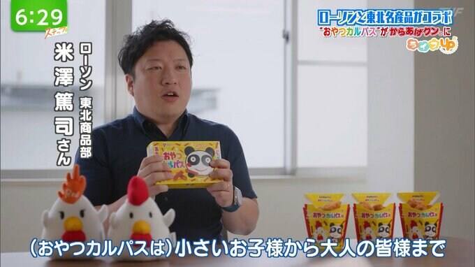--米澤篤司さん(ローソン東北商品部)「小さいお子様から大人のみなさままで、幅広く愛されている商品、そしてからあげクンも愛されている商品というところで、ぜひ今回このおやつカルパスをからあげクンで再現したいと思い、ヤガイ様にご依頼させていただきました。」