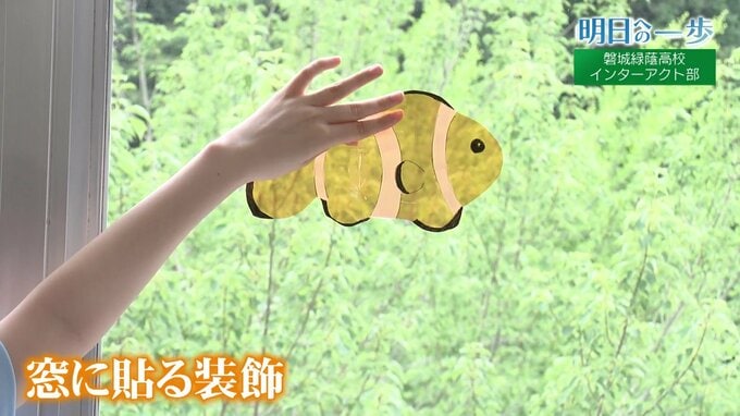 カラーセロハンを窓に貼って、水族館をイメージした装飾にするようです。