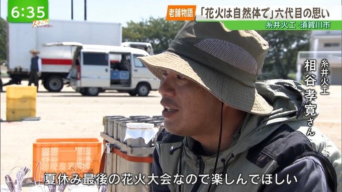 --相谷孝寛さん(糸井火工)「夏休み最後の花火大会なので、楽しんでほしいですね。」