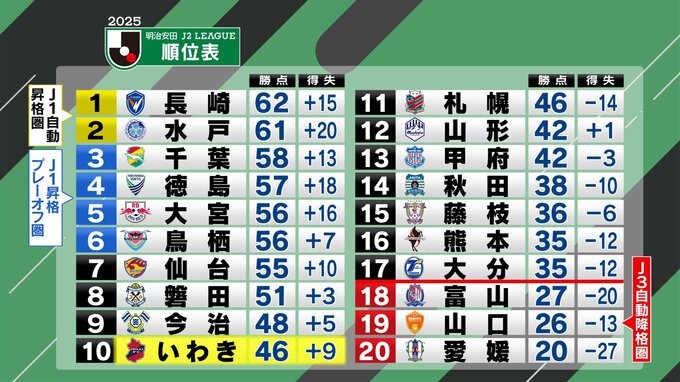 いわきは勝利しましたが、順位は変わらず10位のままです。残り5試合、さらなる上位進出に期待です。