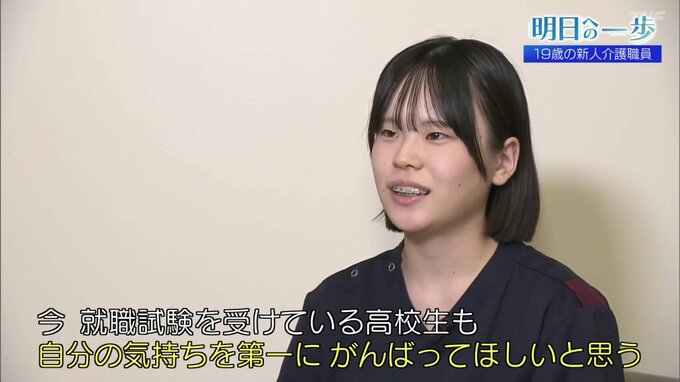 「周りの方からは介護って難しいし、ちょっと厳しいんじゃないかと声を結構いただいた。でも私は自分の選んだ職場でこうして働けて、やっぱり良かったなって思っているので、今就職試験を受けている高校生も自分の気持ちを第一に、がんばってほしいなと思います」