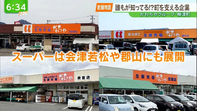 そして少し先のスーパーも。さらに奥の甘味処もかわちやグループが経営しているんです。スーパーマーケットは柳津だけでなく、会津若松や郡山にも展開。