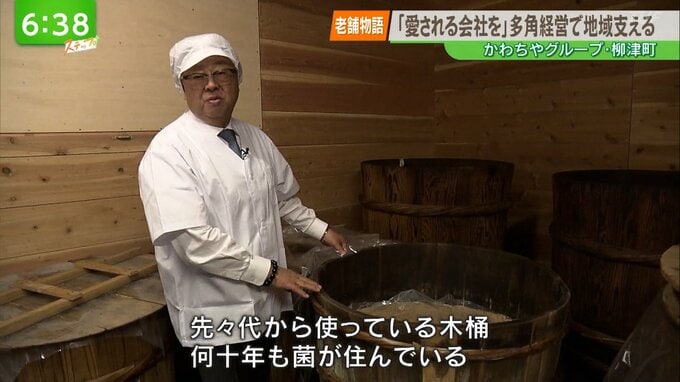 --山内拓也 会長(かわちやグループ)「先々代から使ってる木桶なんですよ。菌がずっとなん十年も住んでいるんですよね。」
