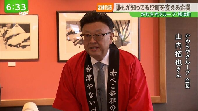 --山内拓也 会長(かわちやグループ)「主となるのはこの柳津なんです。奥会津・柳津の産物を仕入れて、それを加工してですね、うちの各スーパーで販売するというような。そこから始まっています。」
