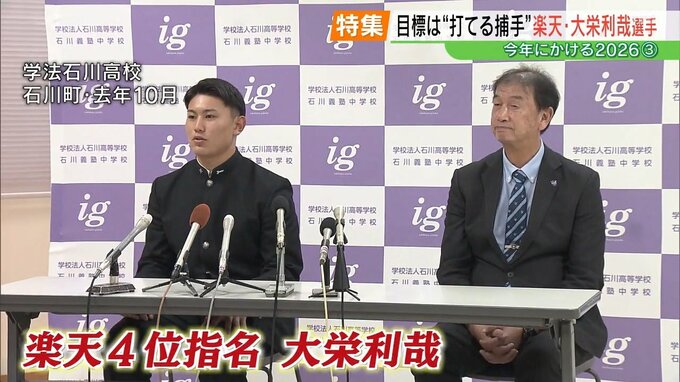 今年、福島県内で注目の人をシリーズで紹介する「今年にかける2026」。3回目はプロ野球東北楽天ゴールデンイーグルスに入団した学法石川高校の大栄利哉選手です。いわき市出身の大栄選手は、あこがれのプロ野球の世界ではばたきます。