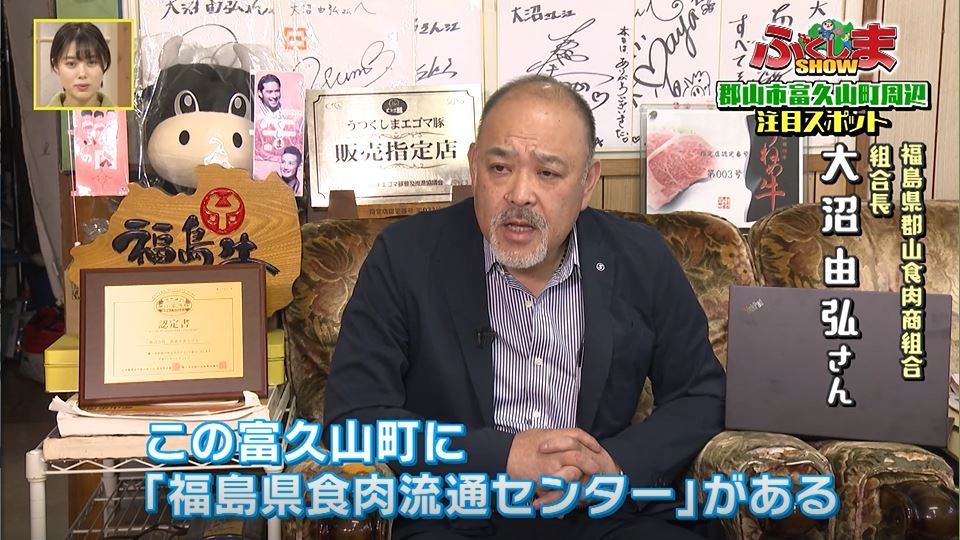 --福島県郡山食肉商組合 組合長 大沼由弘さん「この富久山町に福島県食肉流通センターがあります。そこでは総合的にお肉を処理しまして 卸業者・小売店に供給しています。」