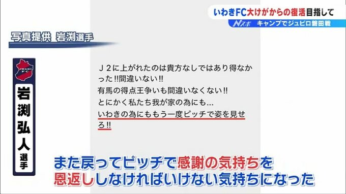 けがをした直後は落ち込んだものの、岩渕選手のもとに届いたメッセージ「いわきのためにもう一度ピッチで姿を見せろ」。