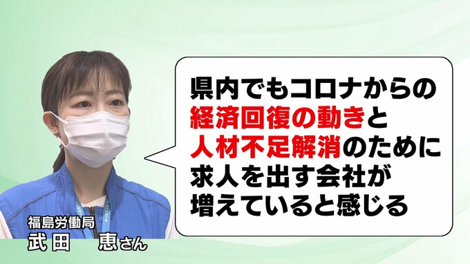 説明会を開いた福島労働局の武田さんは「県内でも新型コロナからの経済回復の動きと人材不足解消のため、求人を出す会社が増えていると感じる」と話しています。