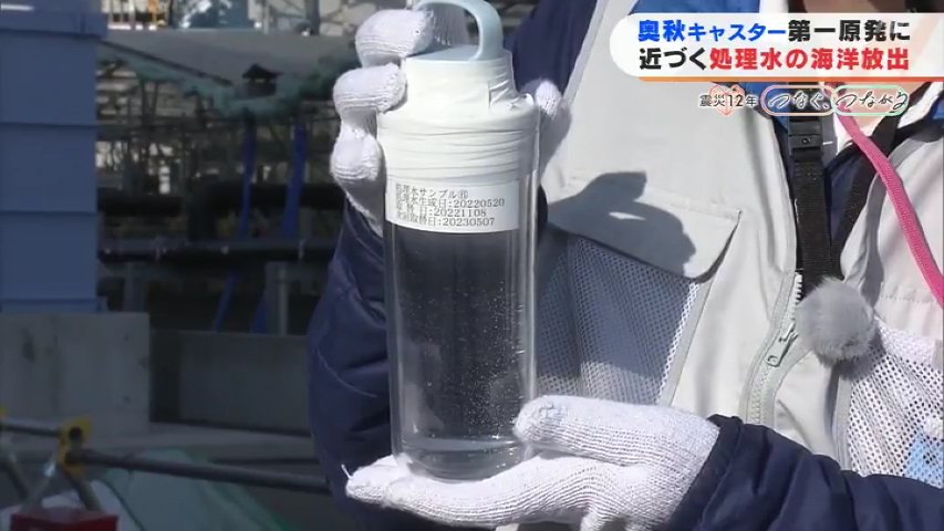 奥秋キャスター「いま私の手にあるのが処理水です。ご覧のように見た目は普通の水と全く変わりません」