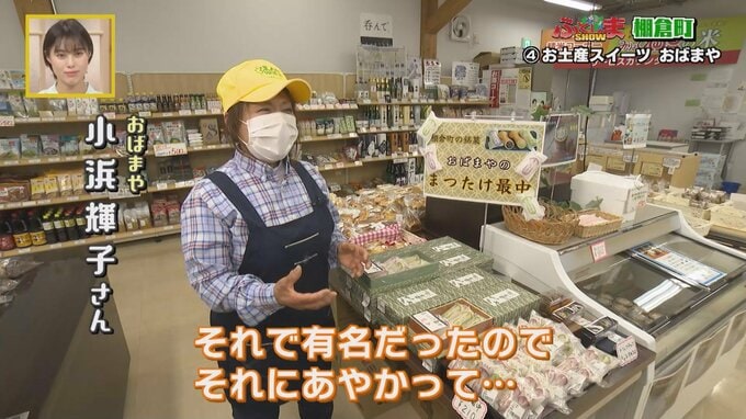 --おばまや 小浜輝子さん「この近くに山本不動尊があります。そこでマツタケがとれたんですね、その頃は。有名だったのでそれにあやかって何かお菓子を作ろうと。」