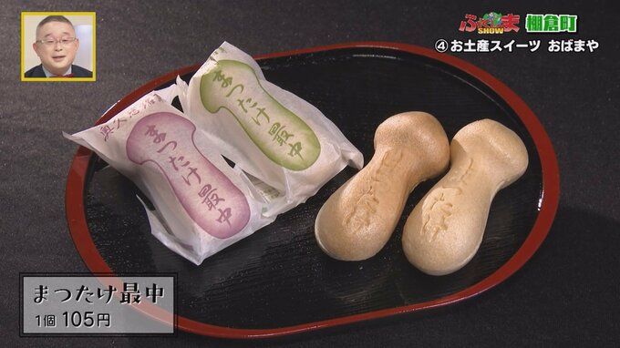 それがこちら「まつたけ最中」。最中なのにマツタケ!?と思うかもしれませんが、60年ほど前から作られていて、町を代表するお菓子として地元では知られています。