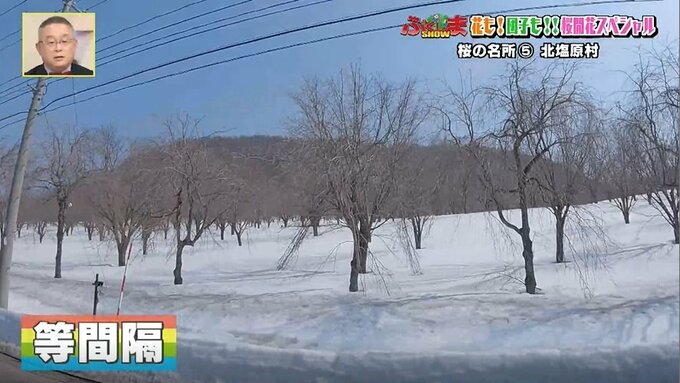 福島県北塩原村の山の中を車で走っていると、「とある場所」で道路わきの木々が等間隔に並んでいるのに気がつきます。