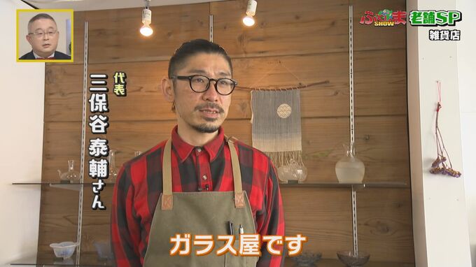 --伏見屋ガラス店 代表 三保谷泰輔さん「ガラス屋です。元々、建築用のガラスとかやっていて、たまたま片づけをしていたら屋根裏部屋から古いガラスが出てきたので、この古さを活かしてなにかできないかということで始めた」