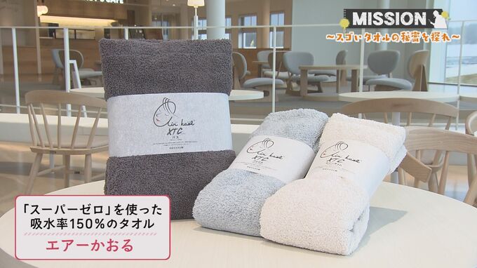 この魔法の糸を使って作られているのが、吸水率150%(自社調べ)のスゴいタオル『エアーかおる』だったんですね。