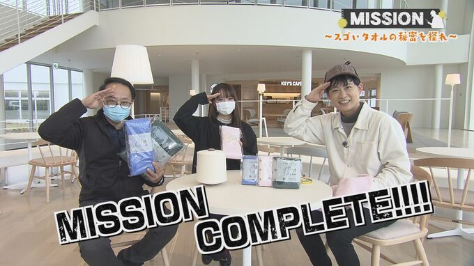 --浦部調査員(TUFアナウンサー)「ふわふわだぁ。“スゴいタオル”の秘密は、双葉町で作られている糸にあったんですね。以上、ミッションコンプリートです!!」